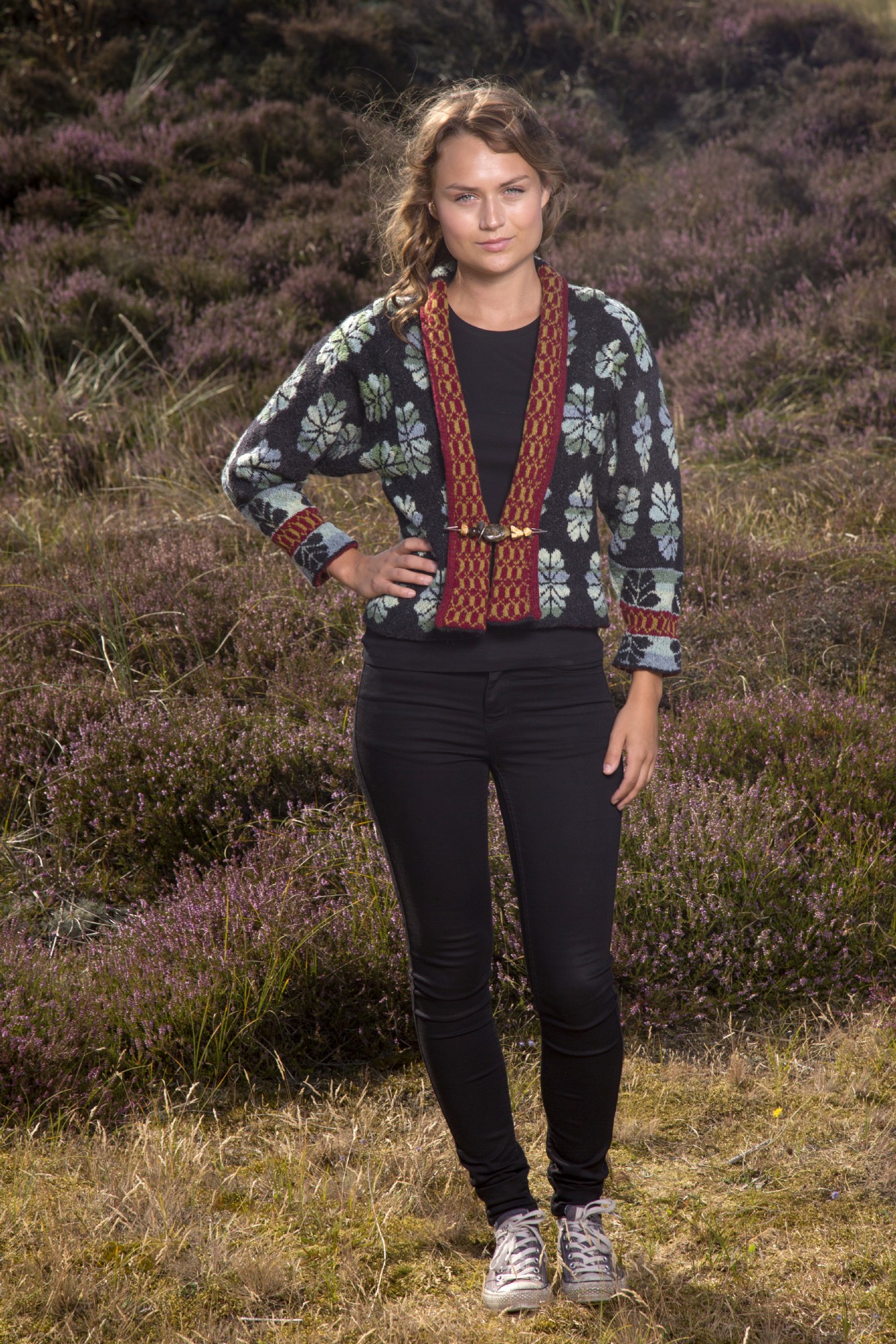 Die Caledonia-Jacke ist eine schöne kurze Jacke mit einer klassischen Passform. Die Jacke kann im Wende-Effekt von innen nach außen gedreht werden und bietet einen spektakulären Farbwechsel. Die Jacke wird rundgestrickt, geschnitten und anschließend geöffnet.