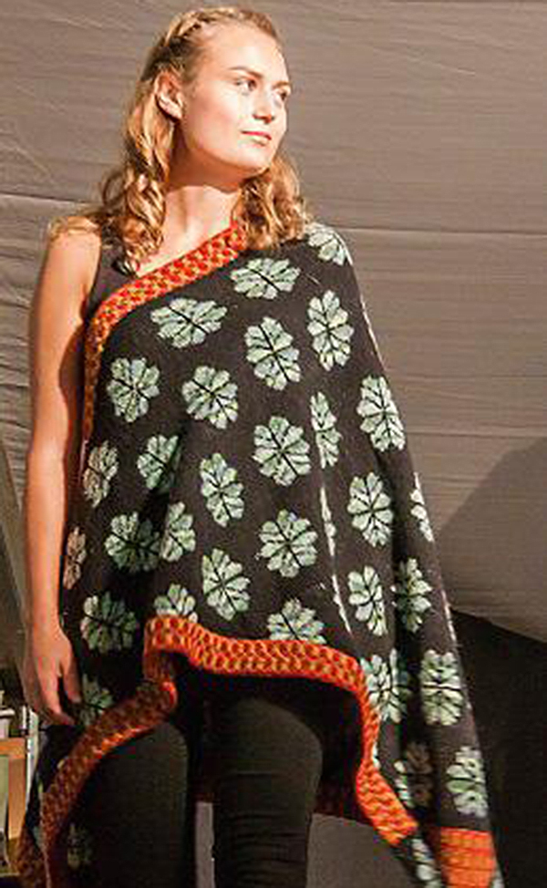 Der Schal wird rund gestrickt und anschließend geschnitten und geöffnet.