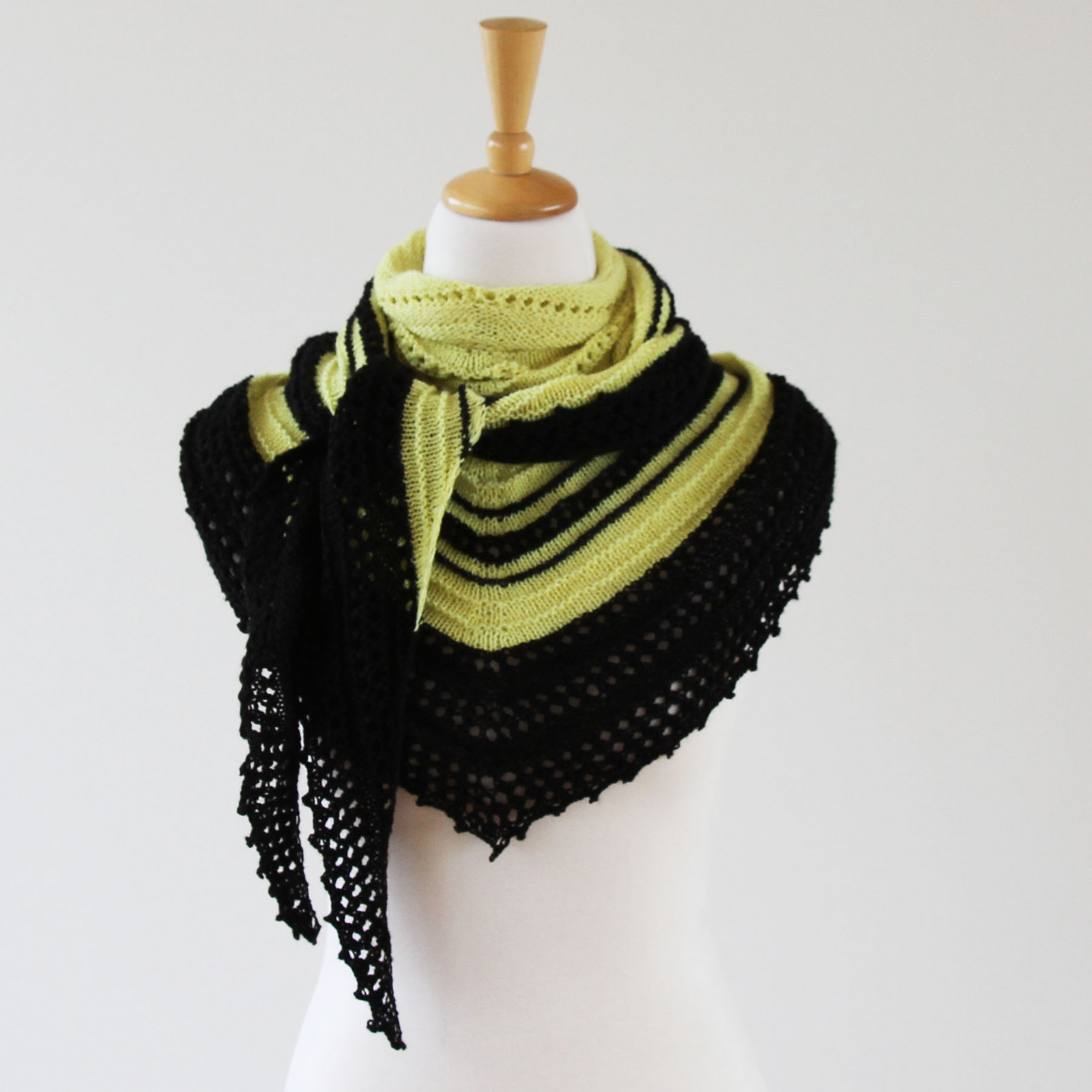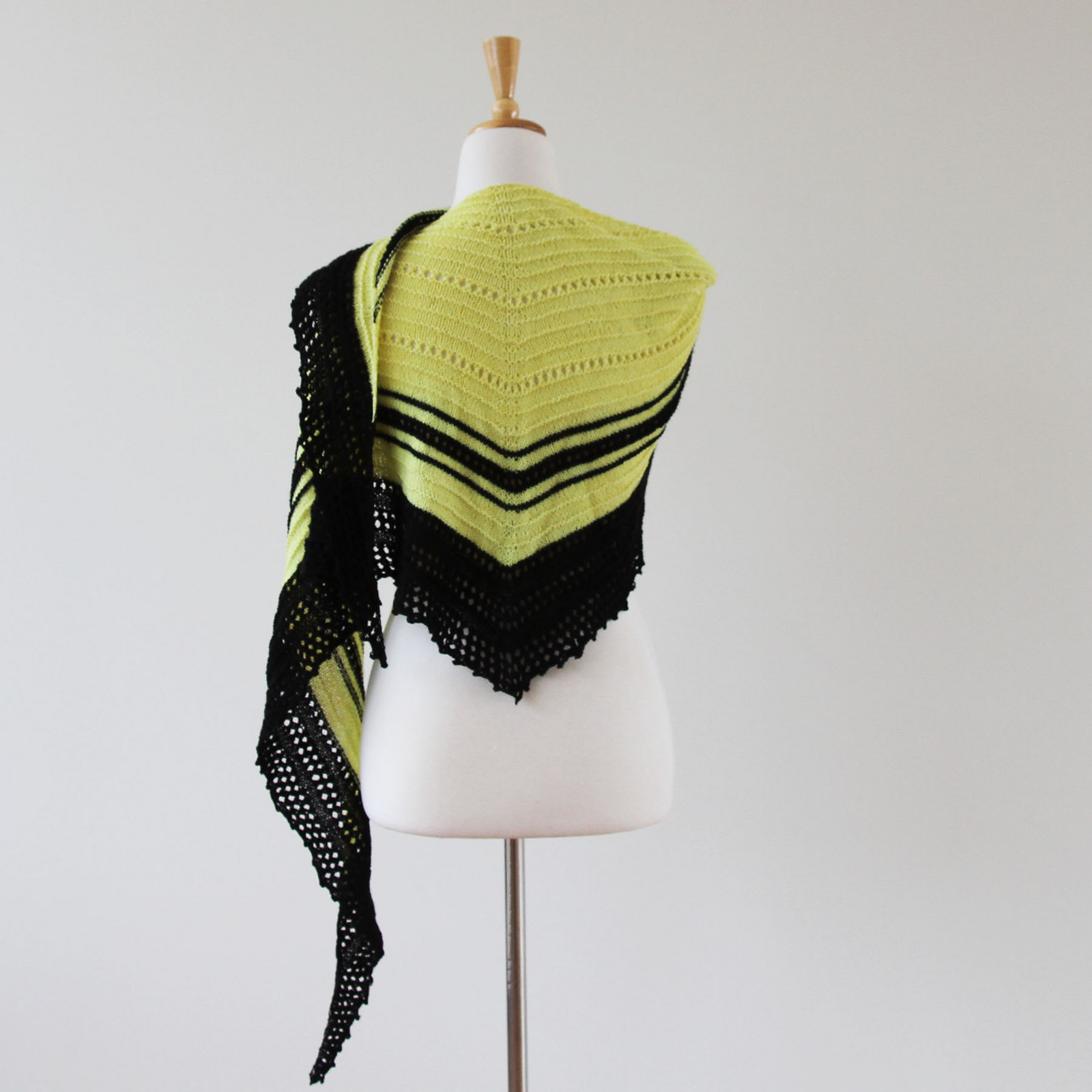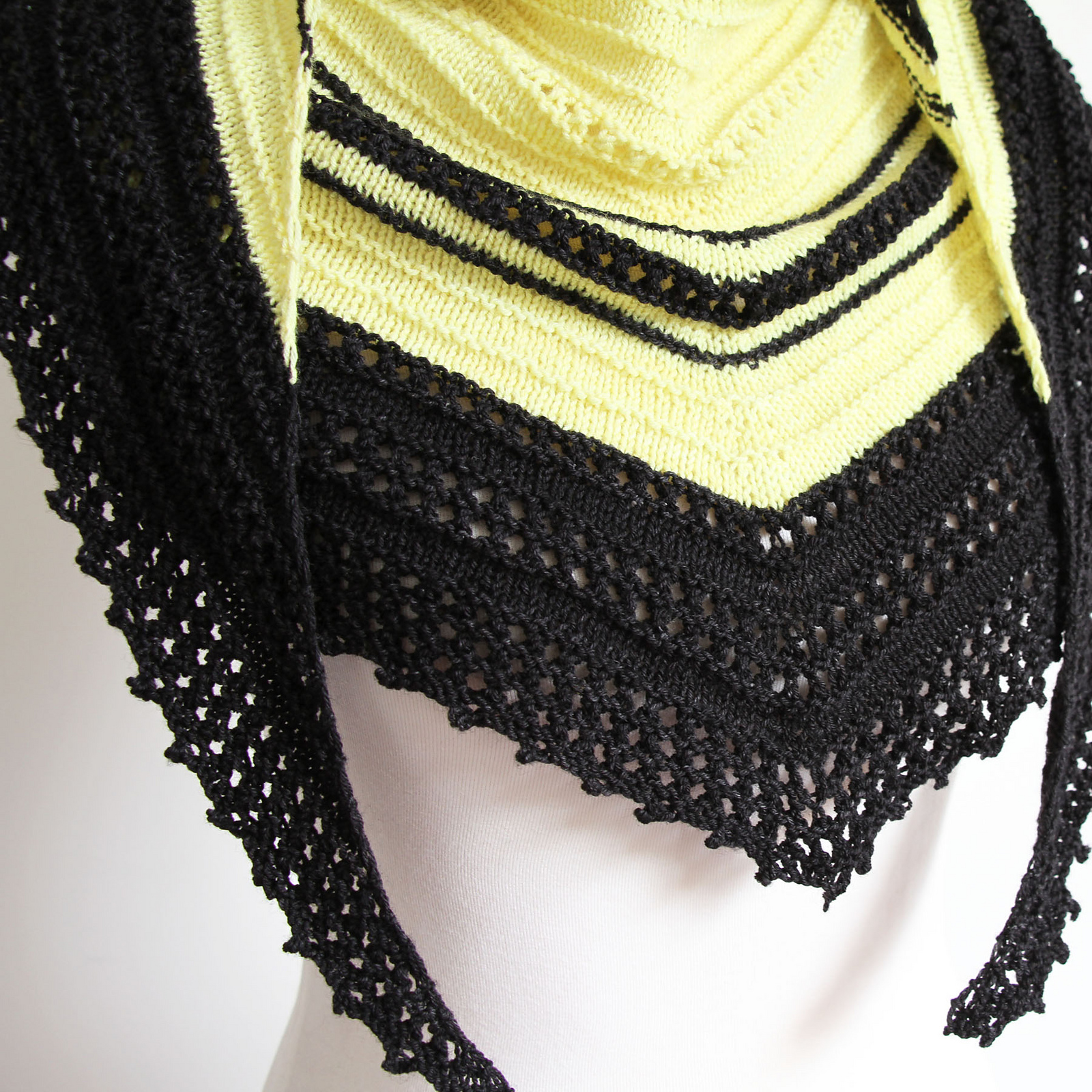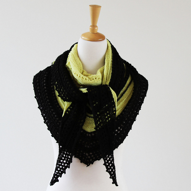 Der Sherbet Fountain von Ambah o Brian präsentiert sich als wandlungsfähiges, leicht zu strickendes Dreieckstuch, dessen Stärke in Farben mit großen Kontrasten liegt. Das facettenreiche Tuch kann auf viele Arten gewickelt und getragen werden und wirkt aus jedem Blickwinkel modisch gekonnt. Der bewusst texturierte Kontraststreifen zieht dabei alle Blicke auf sich.